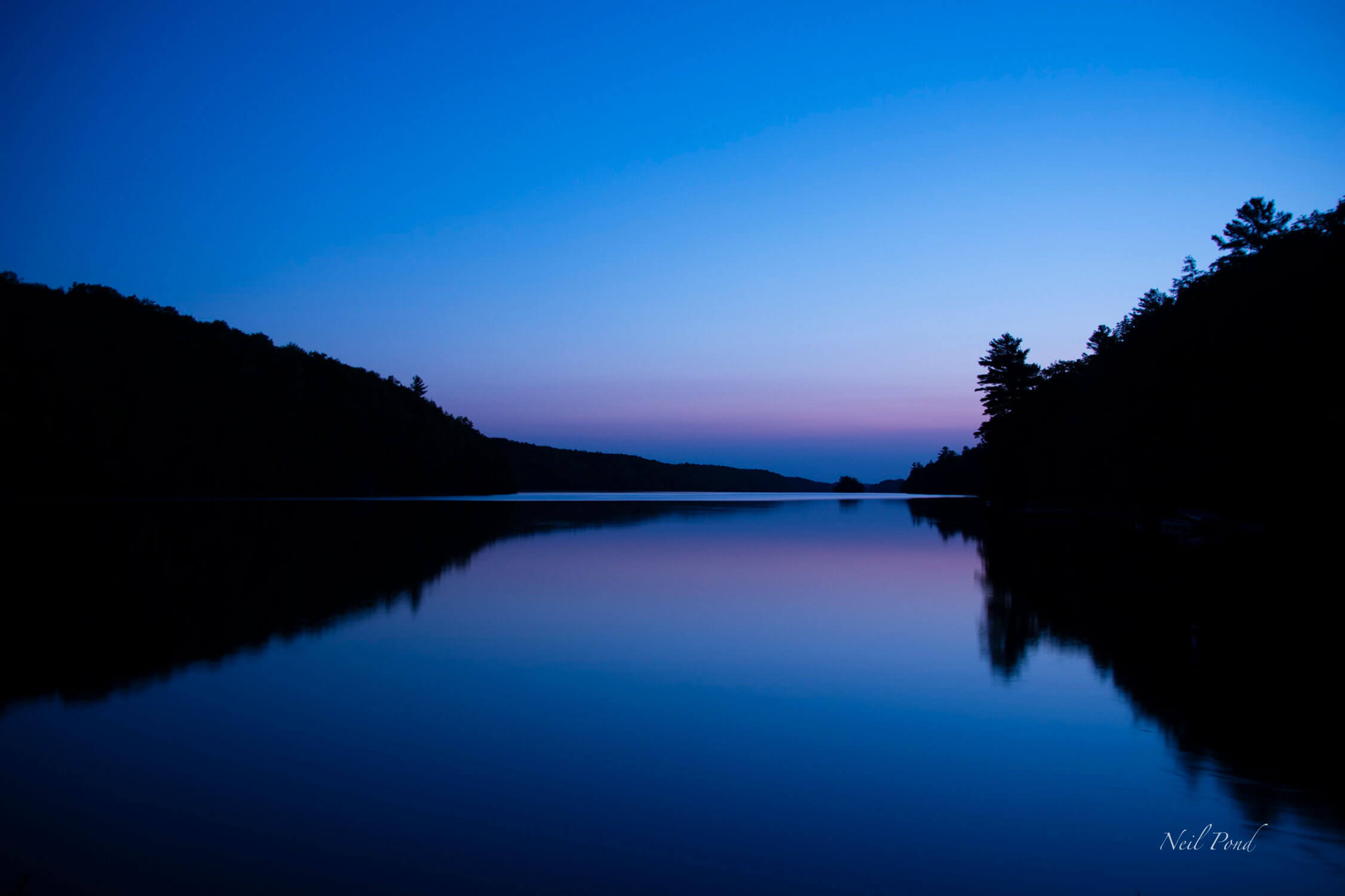 The blues pop in this symmetrical piece that draws the eyes down serene Canoe Lake. Known as a great spot for kayaking, hiking and camping, this lake boasts a campground as well.