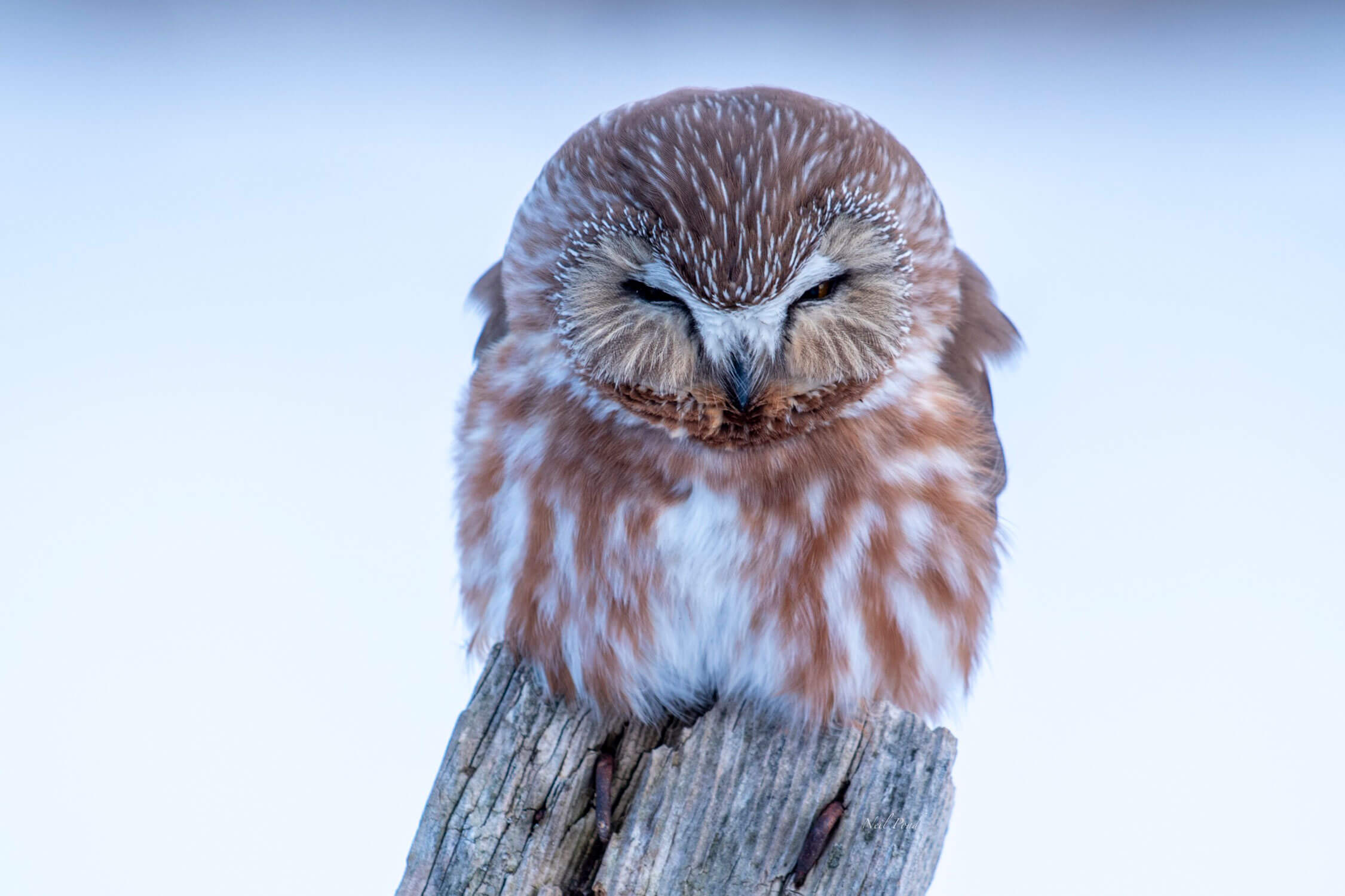 Marj’s owl landed on her cedar rail fence in the backyard, waiting to be seen outside of the forest. This northern saw-whet owl was so cute peeking at the camera and showing off it’s soft feathered pattern.